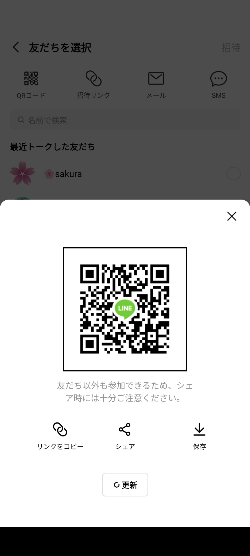 十分な友達が集まった際は、QRコードを更新することで、友達追加はできなくなります。