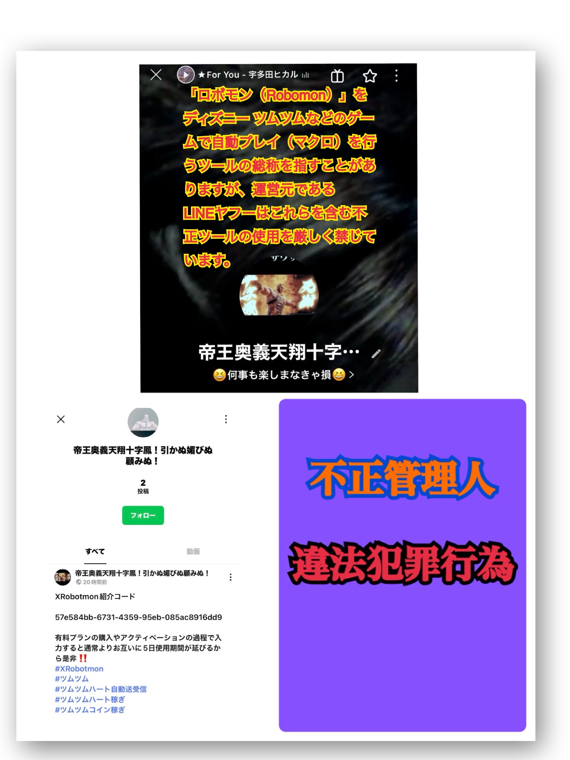 ☆チート行動確認の為、ツム基本データの画像をLINEまで送信ください。